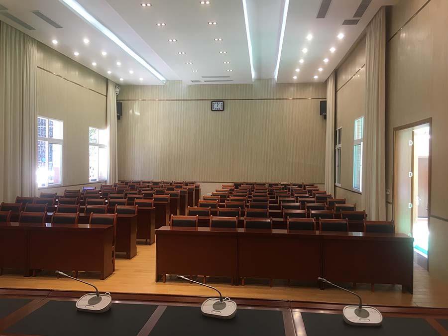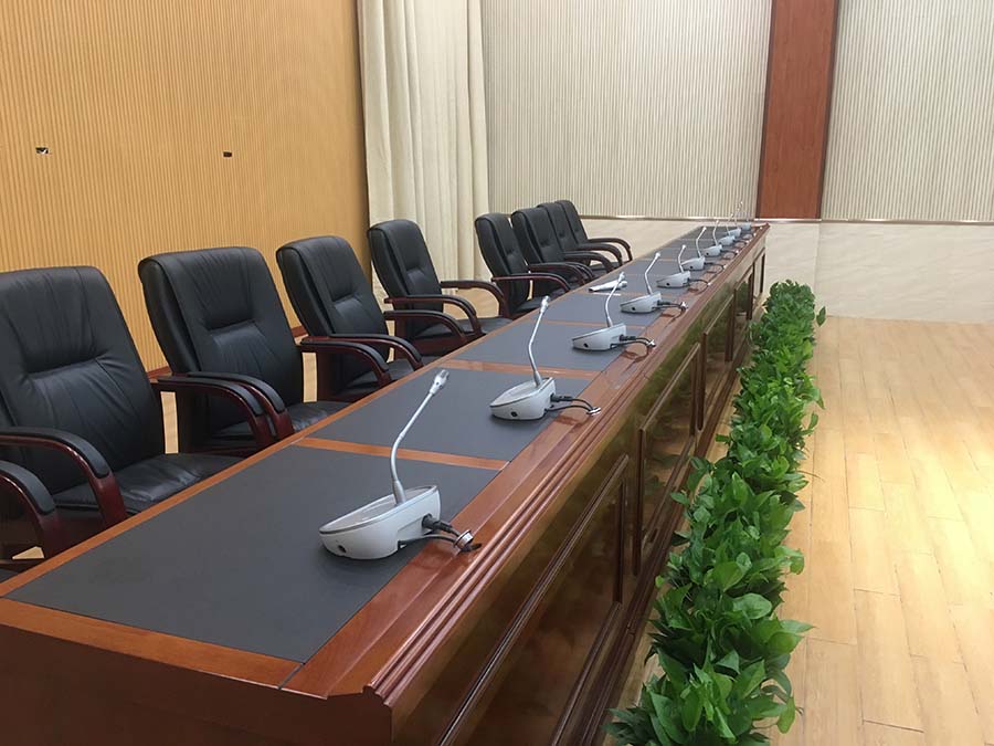 万盛管委会会议室选用德国博世(BOSCH)手拉手话筒,美国博士(bose)音响、功放、处理器,雅马哈调音台,铁三角无线话筒,长虹激光投影仪。整套系统运行稳定,会议扩声性能良好,音响声音清晰,话筒使用无啸叫,音箱无杂音,,相关使用方对我公司高度赞誉,对整套设备非常满意。